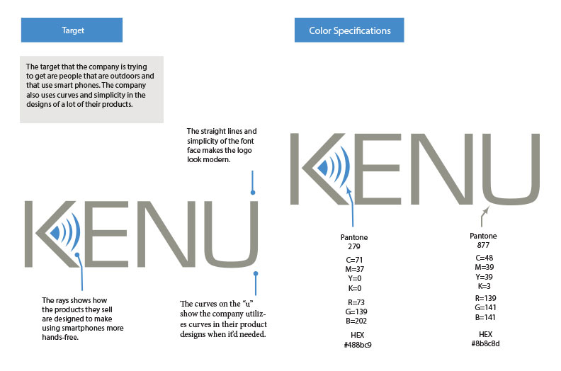 I started off researching abuot their company and the types of customers that bought their products. This company is a mobile accessory company but their products are geared more towards the outdoors type people. After what I learned about them I designed a logo that was clean and showed that they were a mobile accessory company.